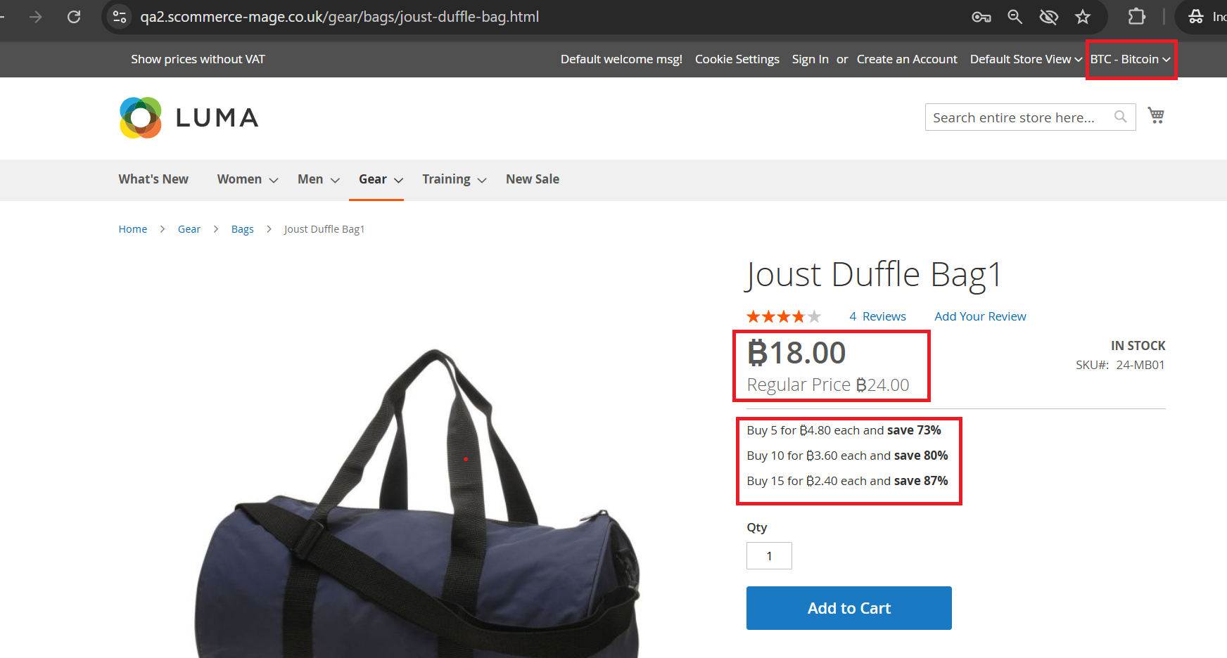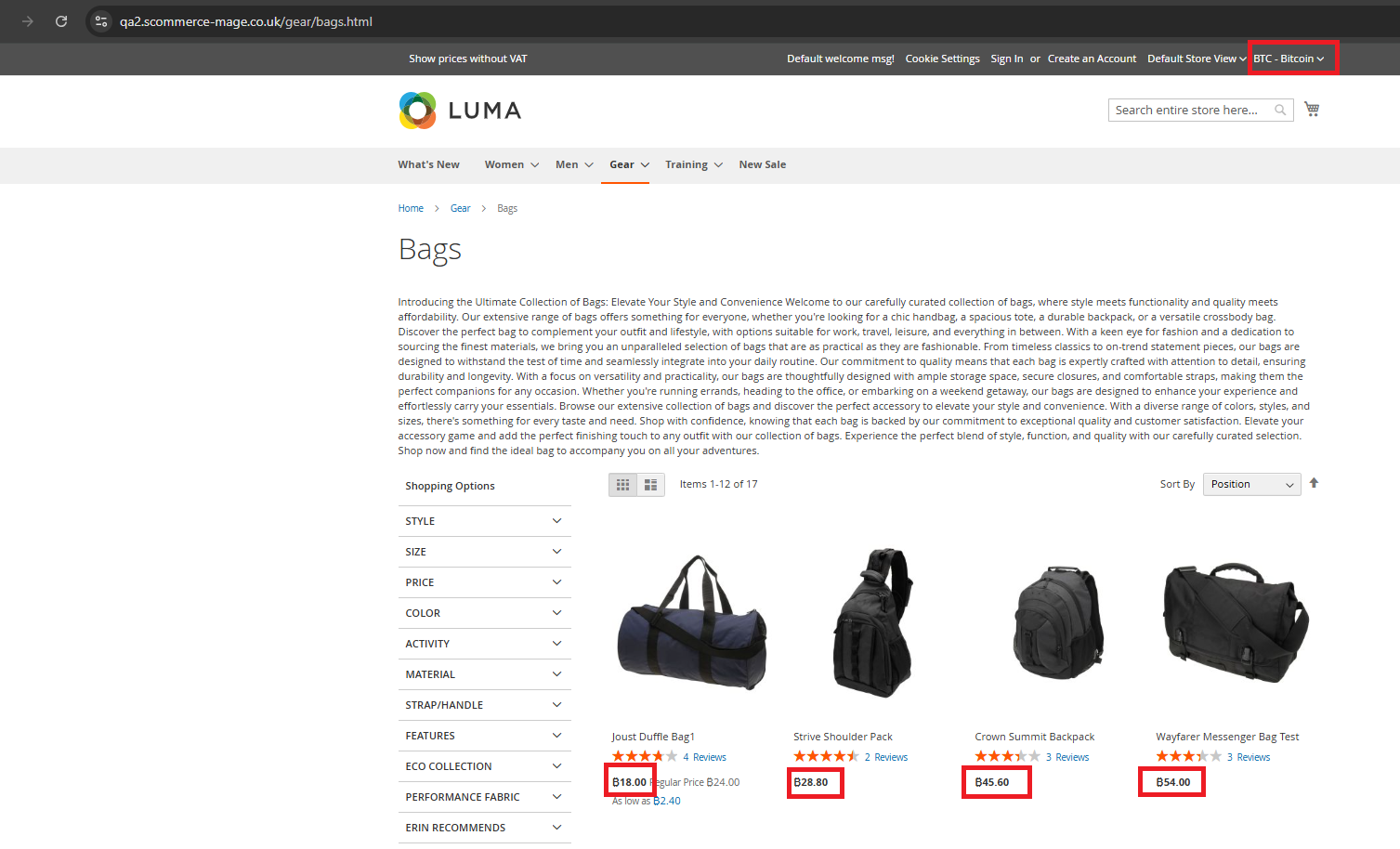 In the Currency Options section, you can define your custom currency codes like BTC.. Navigate to: Admin Panel > Stores > Configuration > General > Currency Setup. Once configured, these custom currencies will appear in the currency selector on the frontend typically at the top of your store.