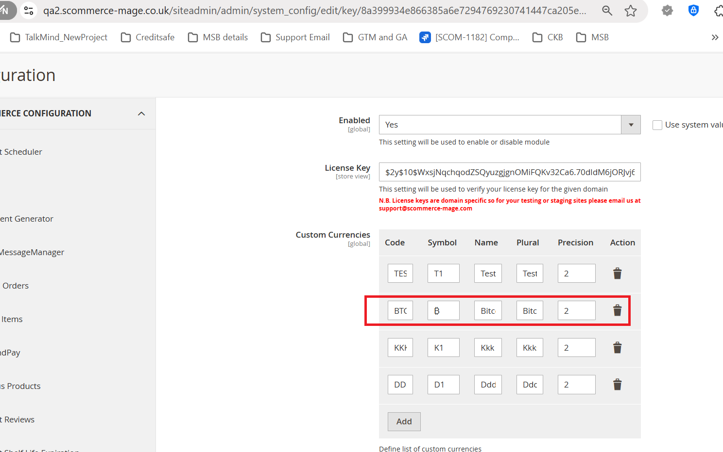 - License Key – Please add the license for the extension which is provided in the order confirmation email. Please note license keys are site URL specific. If you require license keys for dev/staging sites then please email us at support@scommerce-mage.com.