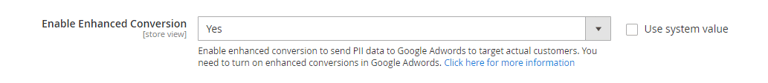 - Enable Enhanced Conversion:- Set "Yes" to enable enhanced conversion to send PII data to Google Adwords to target actual customers. You need to turn on enhanced conversions in Google Adwords. Click here for more information