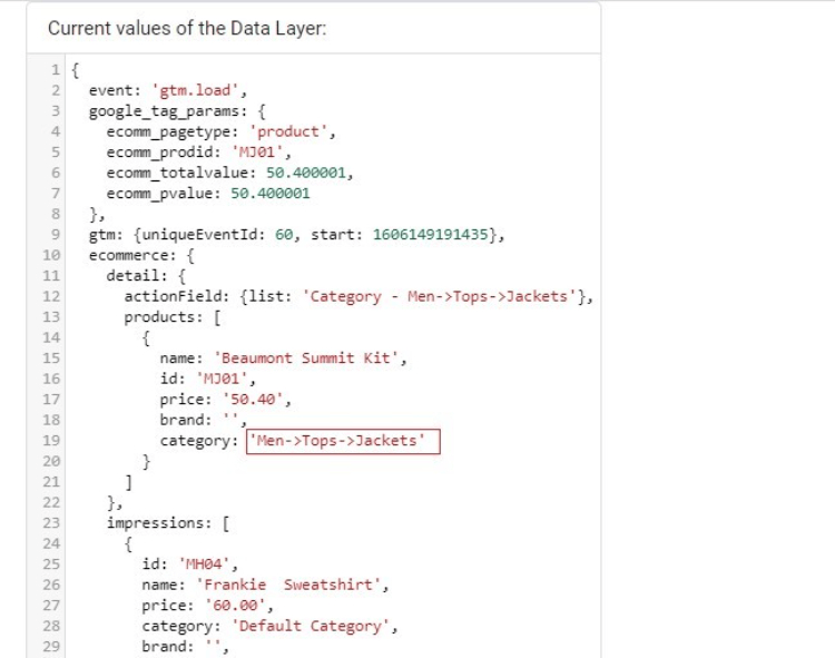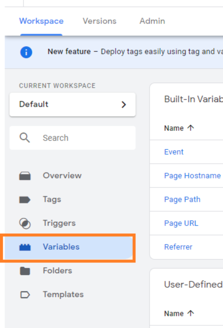 - Setting variable information in GTM