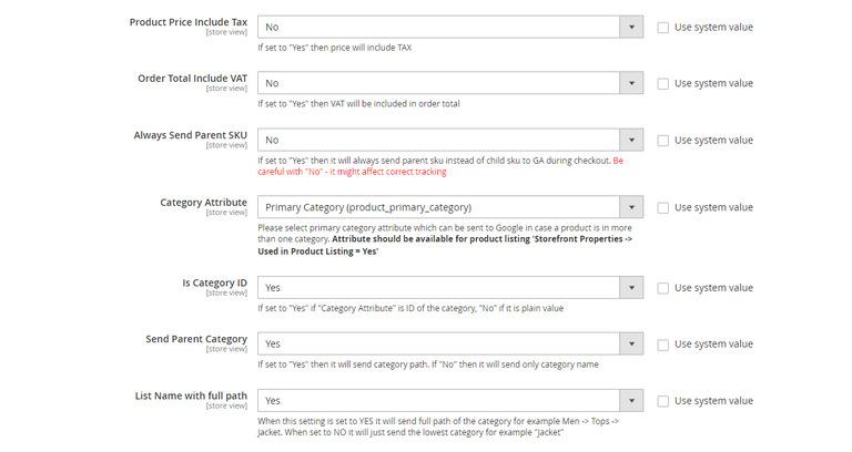 - Always Send Parent SKU – Set “Yes” then it always send parent sku instead of child sku to GA during checkout.