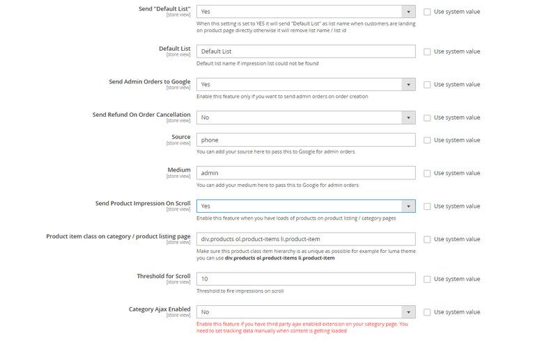 - Send Product Impression on Scroll - Enable this feature when you have loads of products on product listing / category pages.