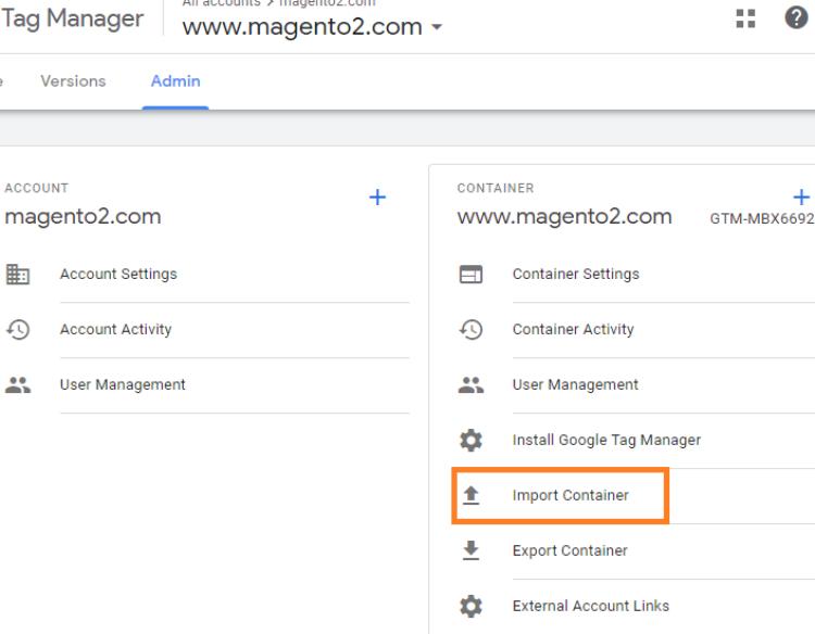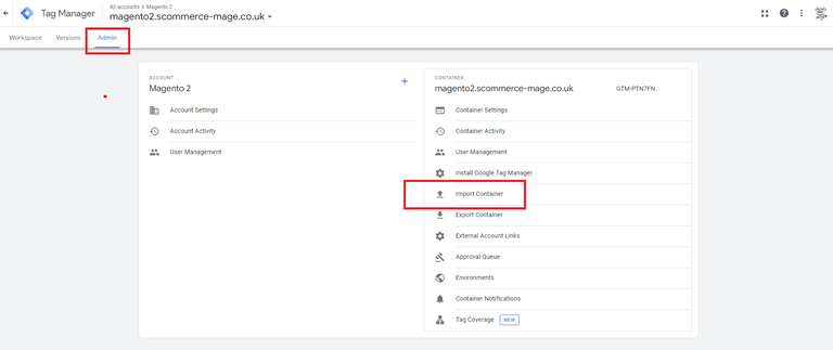 Step 2:- Go to your GTM container then click on admin>Import Container.