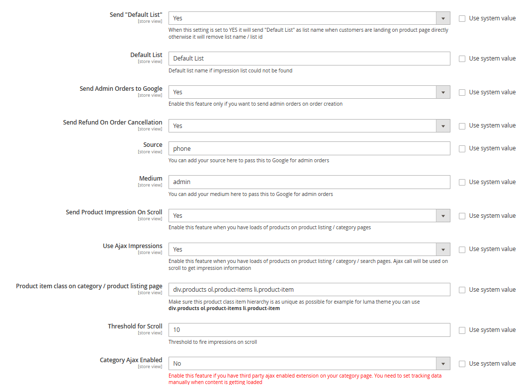 - Send Product Impression on Scroll - Enable this feature when you have loads of products on product listing / category pages.