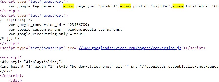 - Dynamic Remarketing Tag/Code Snippets with Product Details