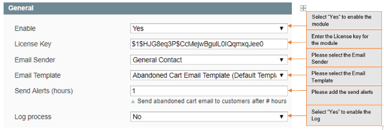 - License Key – Please add the license for the extension which is provided in the order confirmation email. Please note license keys are site URL specific. If you require license keys for dev/staging sites then please email us at support@scommerce-mage.com.