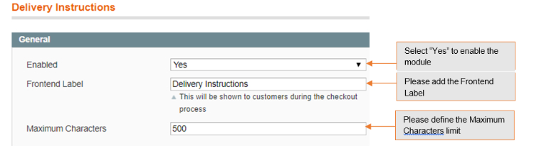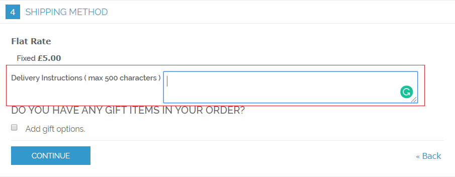 - Delivery Instructions on the Checkout Page - When you enable the module, the Delivery Instruction input field appears on the checkout page.