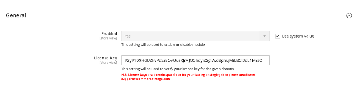 - License Key - Please add the license for the extension which is provided in the order confirmation email. Please note license keys are site URL specific. Please go to Admin > Stores > Configuration > Scommerce Configuration > Core and click on "Verify" to verify the license key.