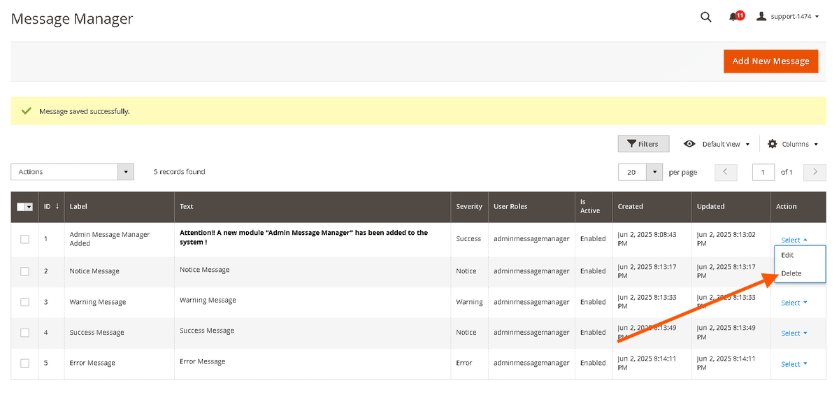 Magento 2 Admin Message Manager
