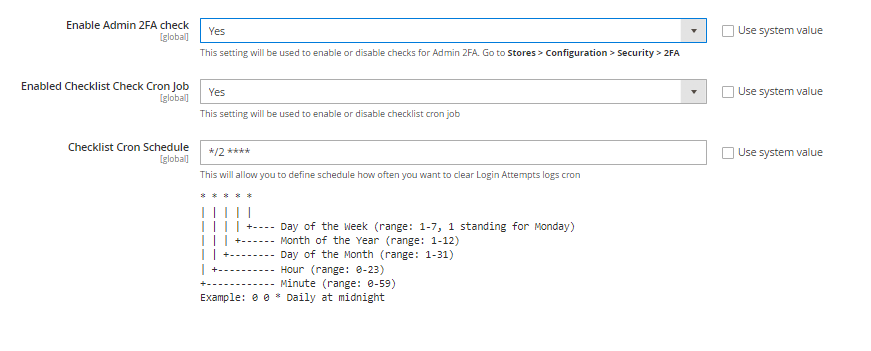 Enabled Checklist Check Cron Job:- If enabled the security checklist also checks whether admin 2FA is enabled or not.