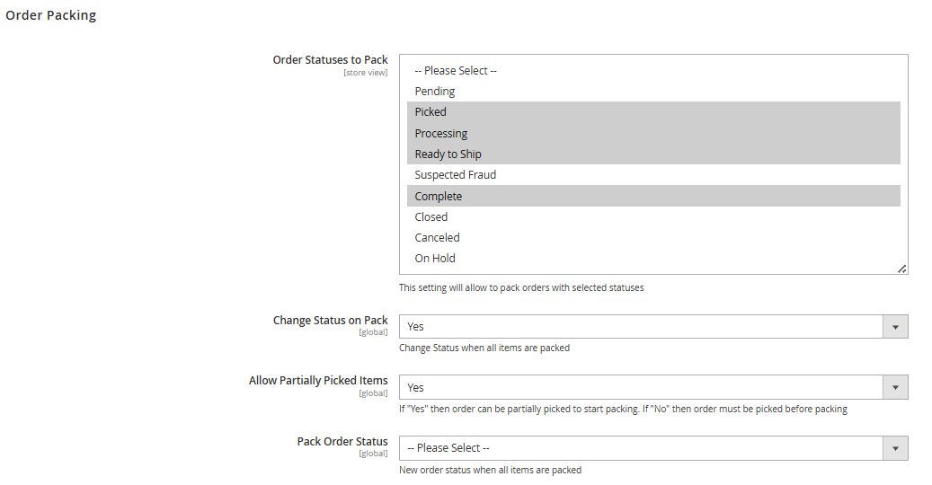 - Order Statuses to pack – Please select the Order Statuses from the options.