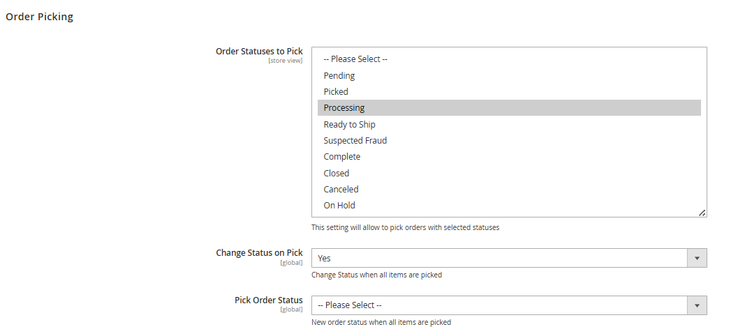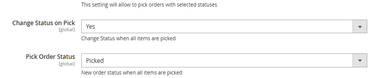 - Change Status on Pick - Select Yes or No to Change the status on pick.