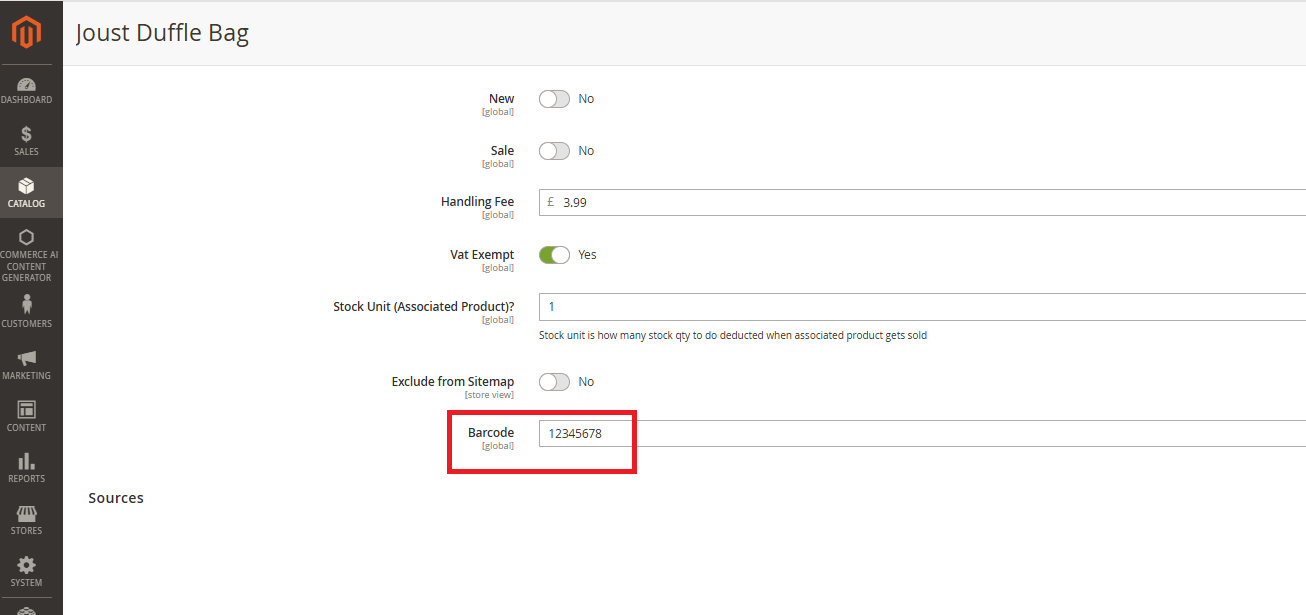 Log in to the Admin Panel, navigate to Admin >Catalog > Products, and select the product you want to edit. Click Edit, then scroll down to the Barcode field. Enter the value 12345678, save the changes, and create an order for the product to which you added the Barcode (24-MB01).