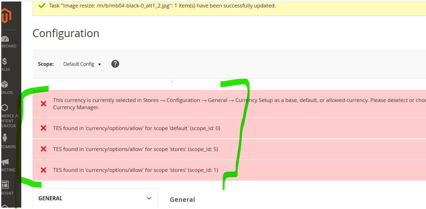 Error for Deleting Currency for configuration settings