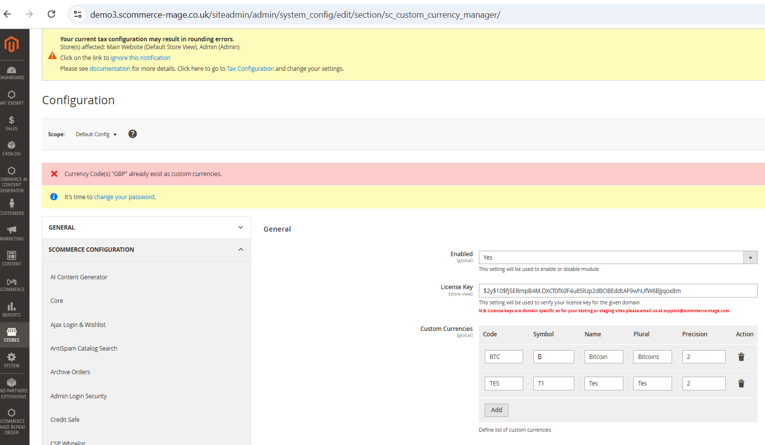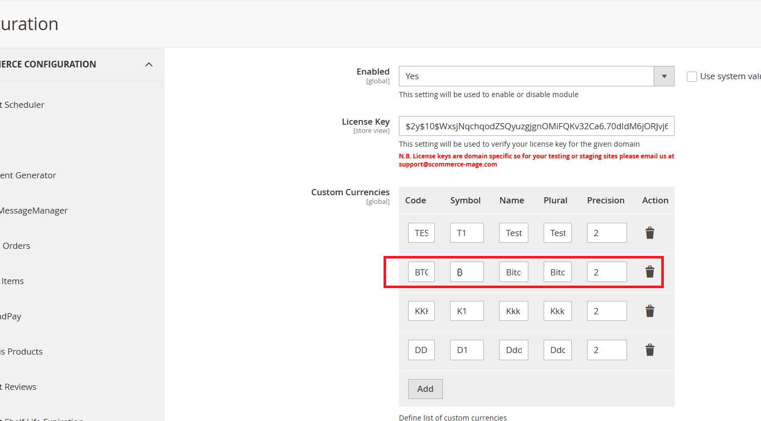 - License Key – Please add the license for the extension which is provided in the order confirmation email. Please note license keys are site URL specific. If you require license keys for dev/staging sites then please email us at support@scommerce-mage.com.