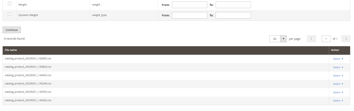 Step 3:- Click on continue and when the cron runs the export will be generated and added in the list below