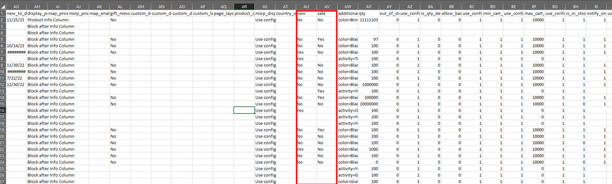 Step 5:- You can see in the export file that our custom attributes new and sale are present in separate columns.