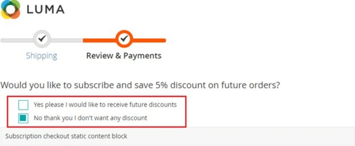 Subscription Options on the Checkout Page - When you enable the module then it shows subscription options on the checkout page, by checking "Yes please I would like to receive future discounts" you can subscribed for the repeat order.