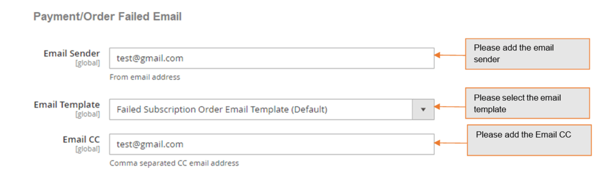 - Email Sender – Please enter sender/from email addresses for Payment order failed email.