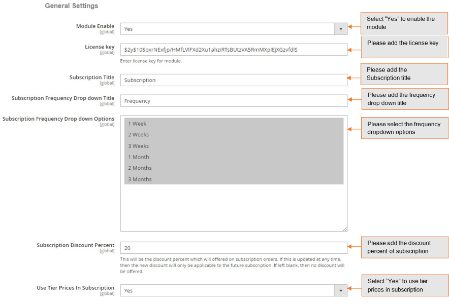 - Subscription Frequency Drop down Title – Enter the title of subscription frequency.