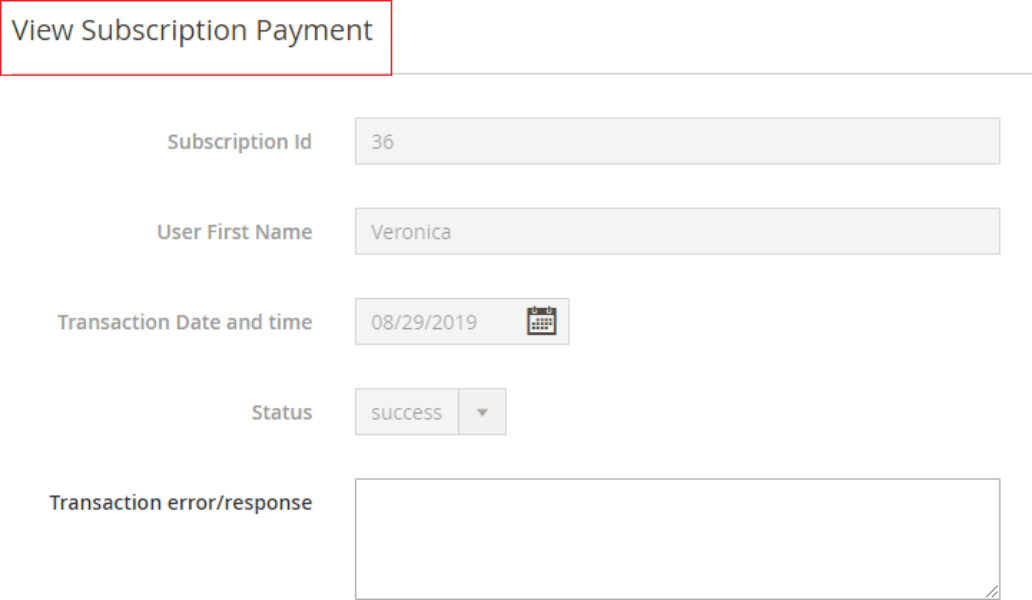 - View Subscription Payment Details - You can view payment details from Admin> Scommerce Mage > Repeat Order > Subscription Payments > Select Subscription > View.