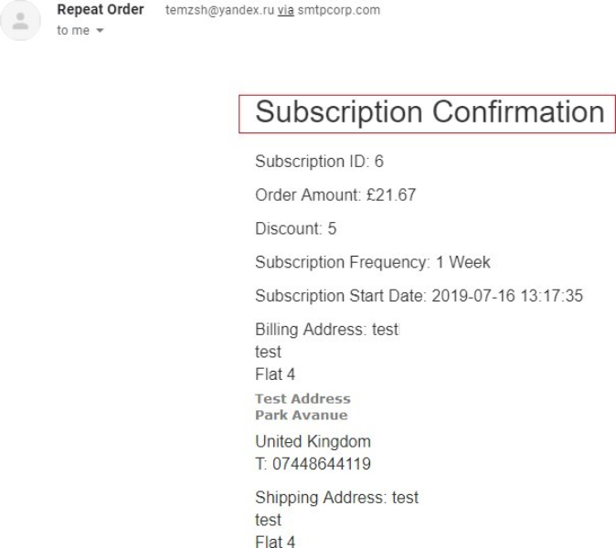 Subscription Confirmation Email – When you subscribed for repeat order, it sends subscription confirmation email.