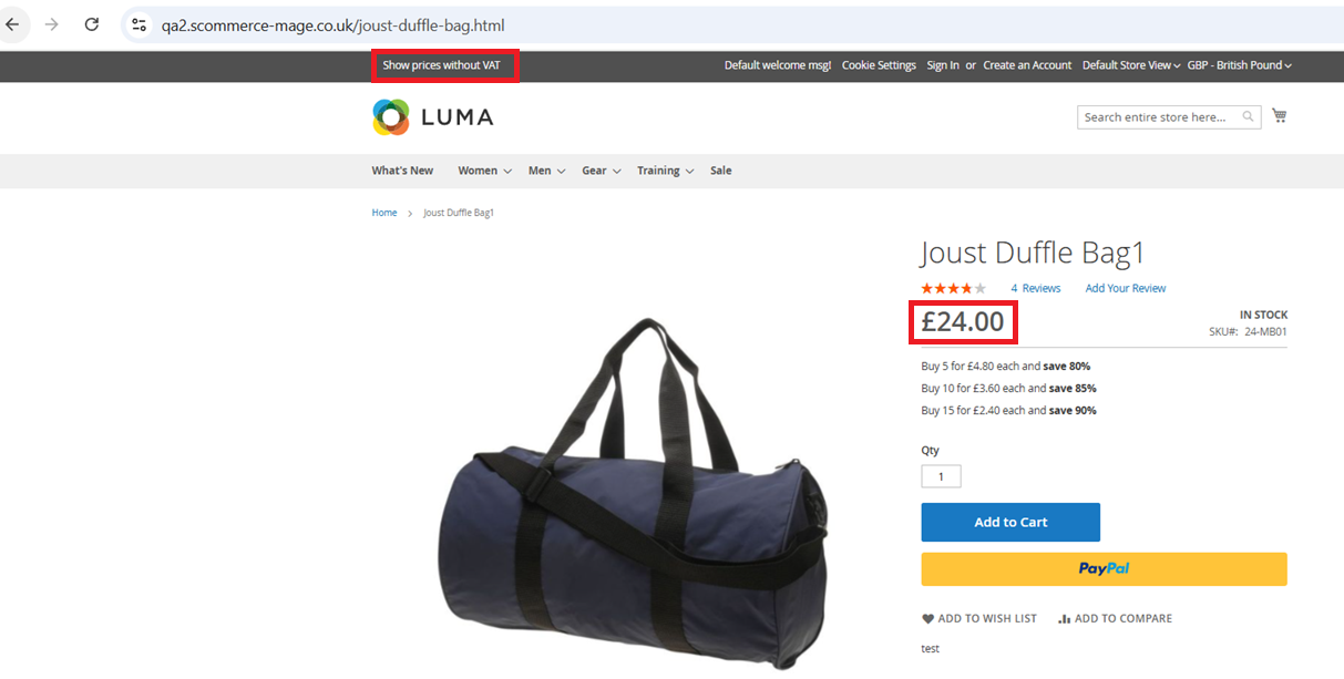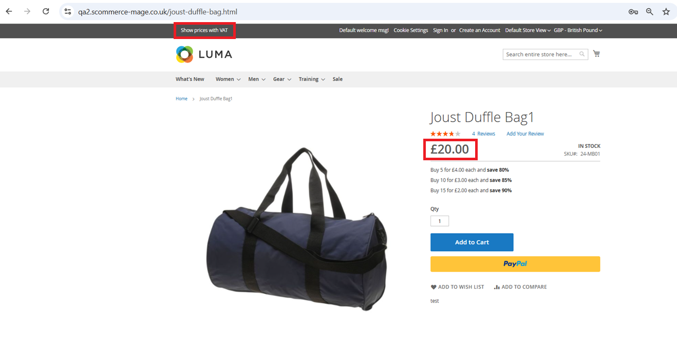 VAT rates are calculated based on the customer’s shipping address or the store’s default tax zone. Displayed prices accurately reflect tax inclusion or exclusion in accordance with Magento’s tax configuration settings.