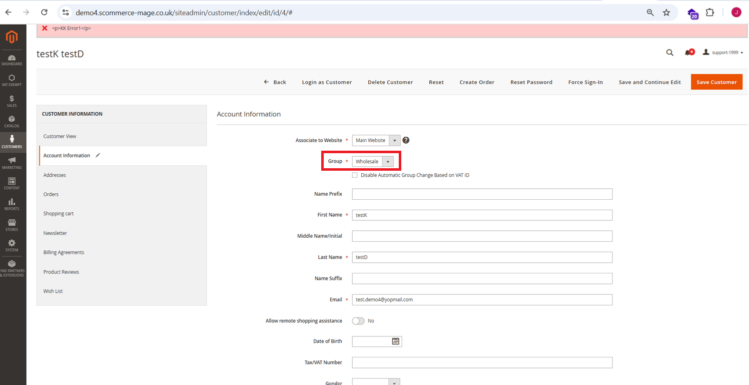 - Customer Groups - Select a customer group from the available options. The VAT Switcher is accessible only to users who belong to customer groups with explicitly granted access.