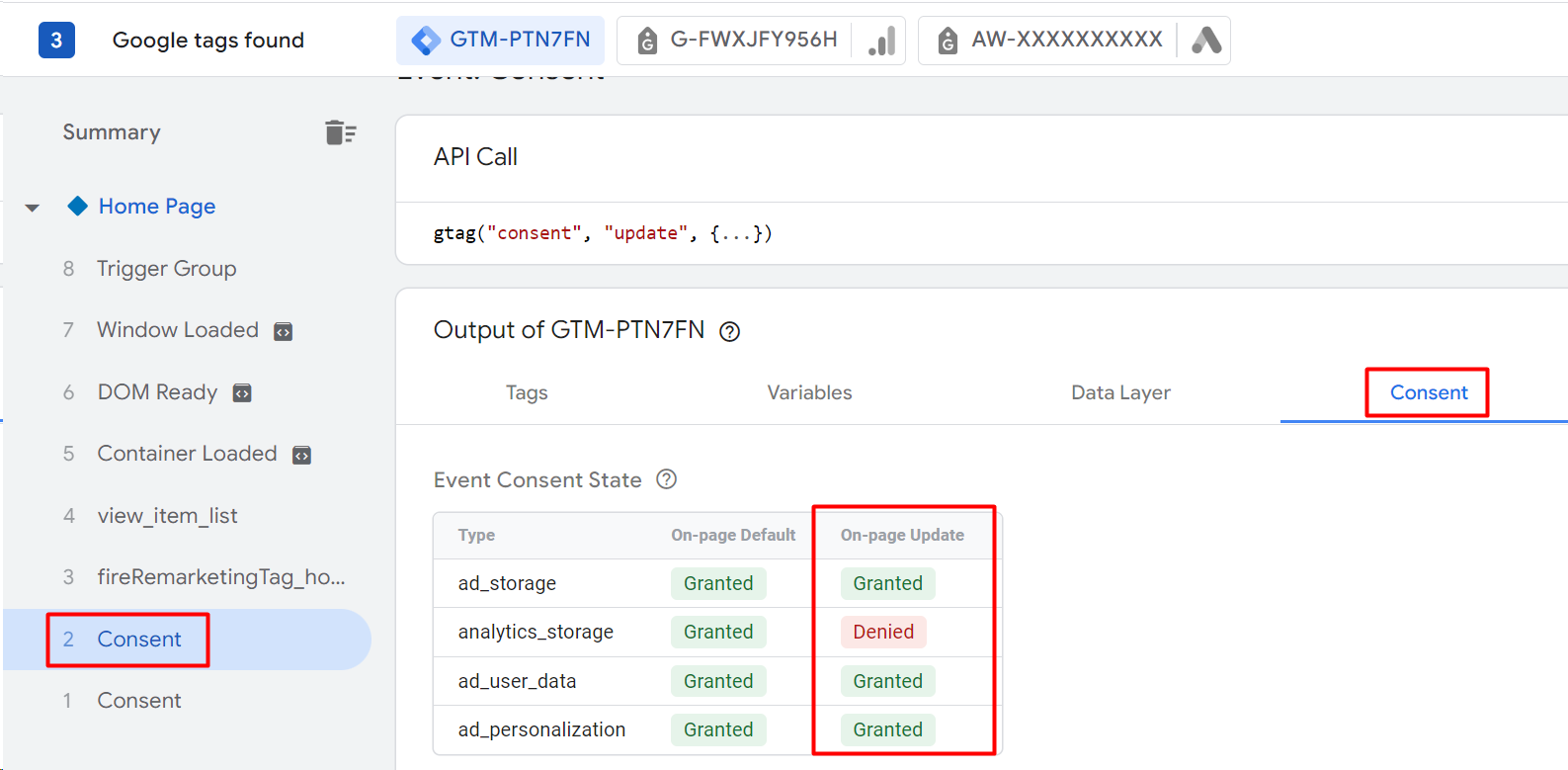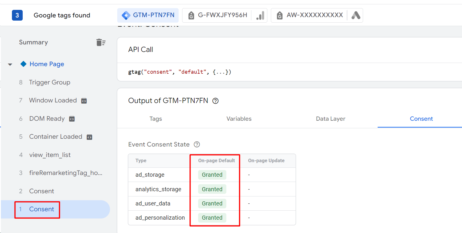 - In order to verify whether the consent mode is working as per the configuration you have set or not, you can preview your changes and compare them with the frontend as shown in the below images. All the values should be the same.