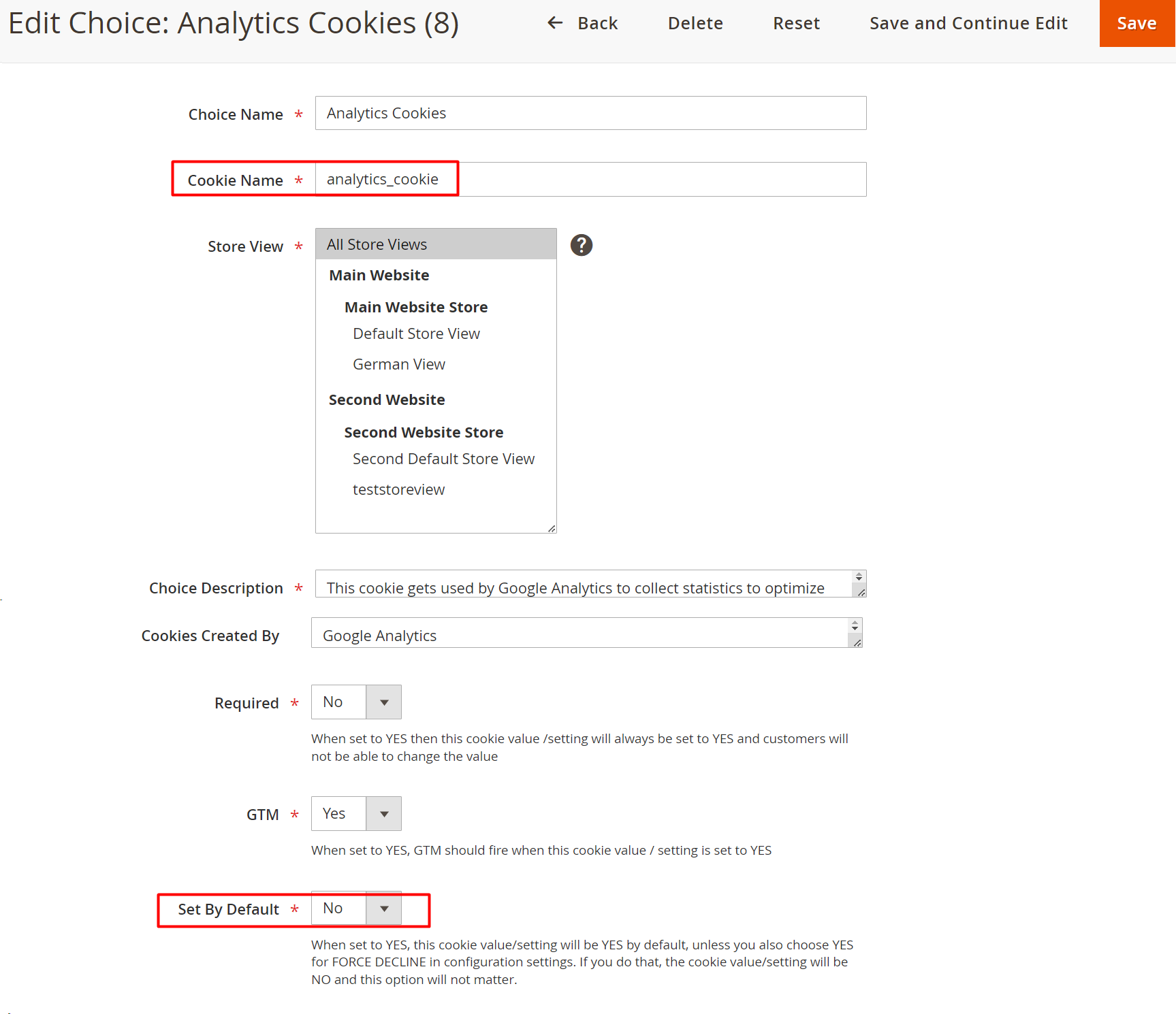 2a. You can do the setup of a new cookie as shown in the below image or you can create your own cookie/s. Please note that “Cookie Name” and “Set by default” are the most important fields as they would be used in the cookie mapping as described in the later steps.