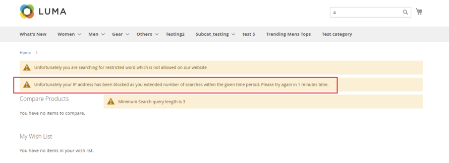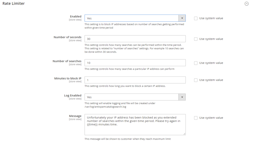- Enabled– Select "yes" to block Ip address of the customers based on the number of searches performed in a specific time.