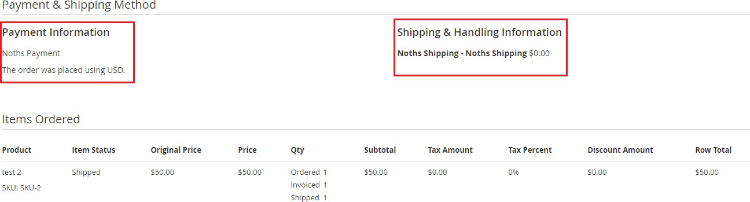 Noths Order Details on Order View Page - You can view Noths order details at Admin > Sales > Select Order > View.