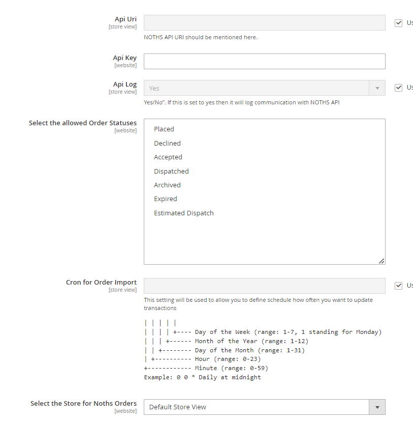 - Noths Order Payment Method - Please add the payment method which will be used to import orders from Noths.