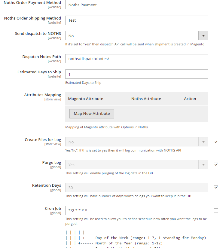 - Attributes Mapping - Please add the mapping of Magento attribute with options in Noths.