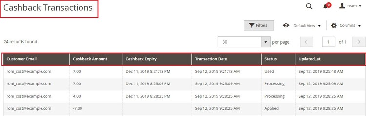 Cashback Transactions - To view cash back transaction go to Admin > Sales > Scommerce Cash Back > Cash Back > Cashback Transactions.