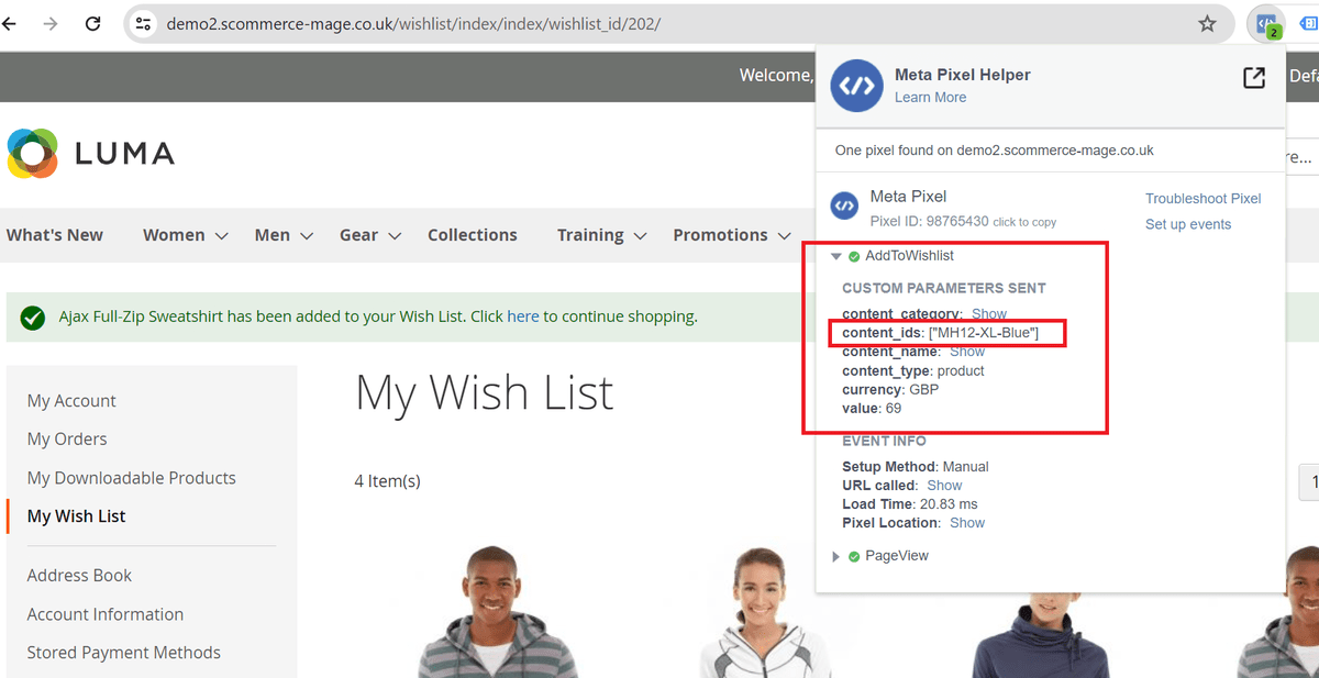 • Facebook Pixel Tag on Add to Wishlist Page -Add to cart when "Always Send Parent SKU" set to 'NO" AND Dynamic Product Ads Enabled - "YES"