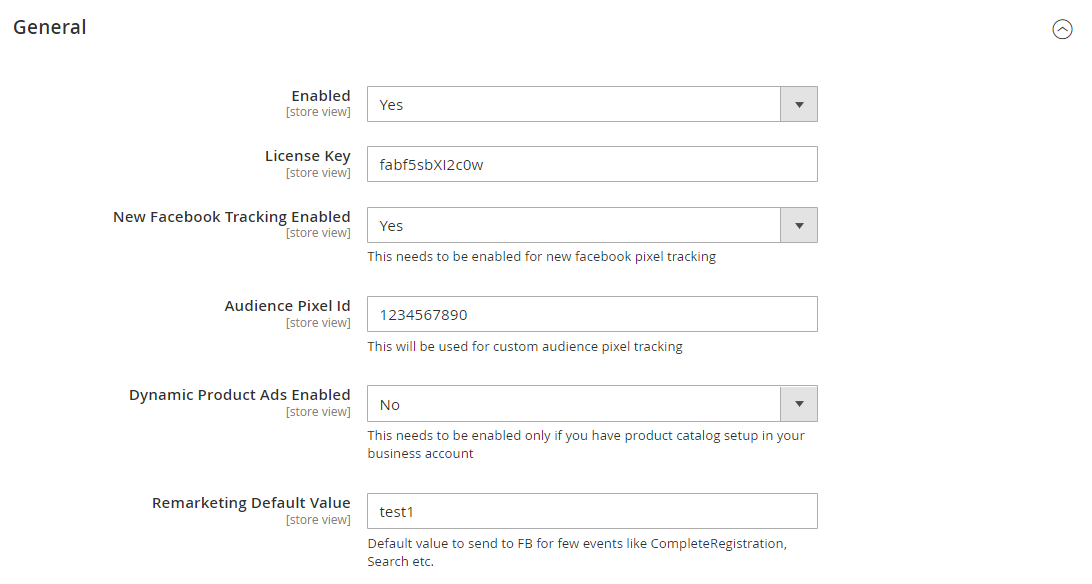 • New Facebook Tracking Enabled – Set yes to enable Facebook new pixel tracking or Remarketing tag https://developers.facebook.com/docs/ads-for-websites/tag/api/