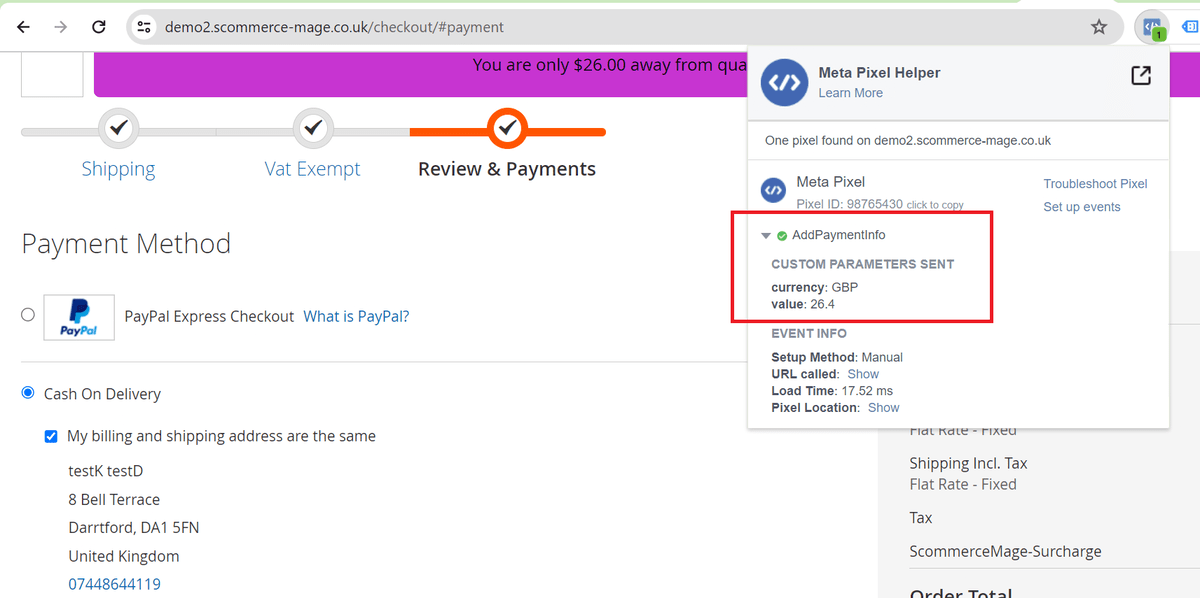 • Facebook Pixel Tag on the Payment Page