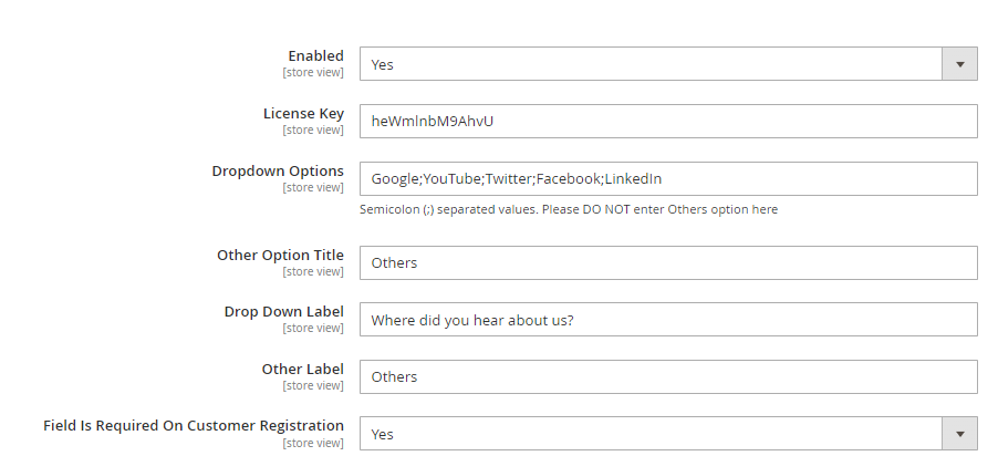 - Field Is Required On Customer Registration - Select "Yes" or "No" to enable or disable the Field is required on customer registration.