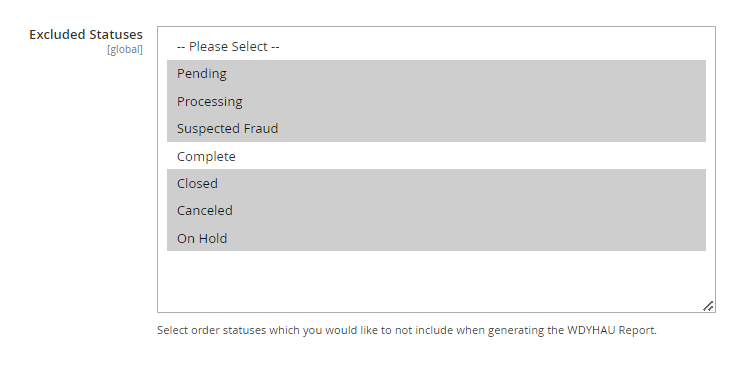 - Exclue Statuses - Select exclude statuses which you would like to not include when generating the WDYHAU Report.