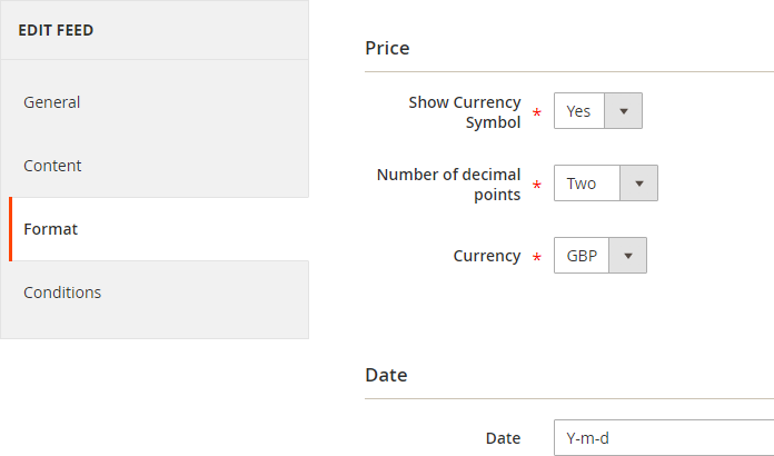 Configuration Settings for Product Feed Generator
