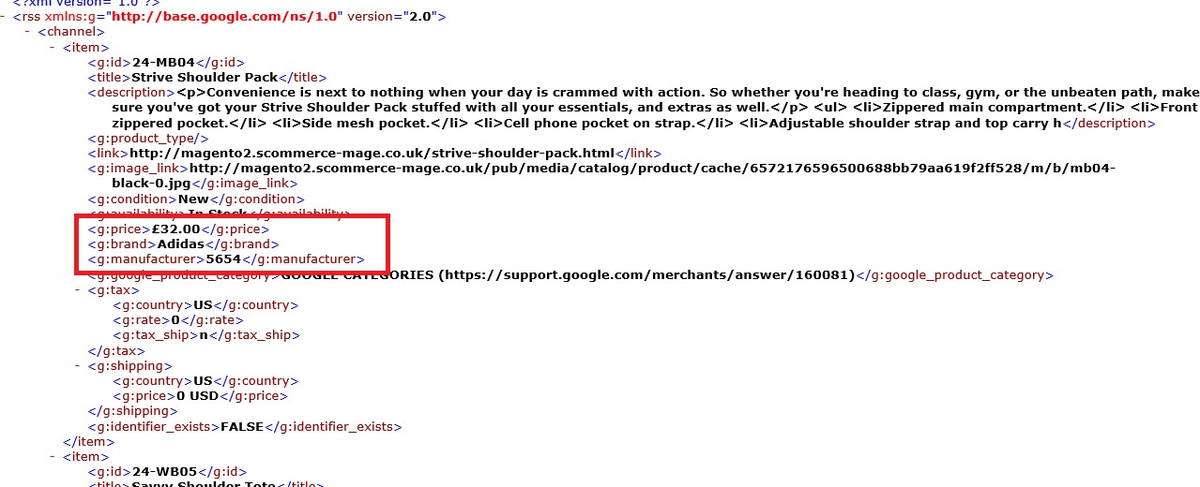 Eg: - Suppose you want to add GBP in the price attribute then you can change it by simply navigating to the tag <g:price> and add "GBP" before closing the tag. Similarly you can customize any part of the data.