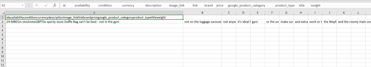 - Google Product Feed CSV – When you click on any CSV feed, it opens the product feed in CSV format.