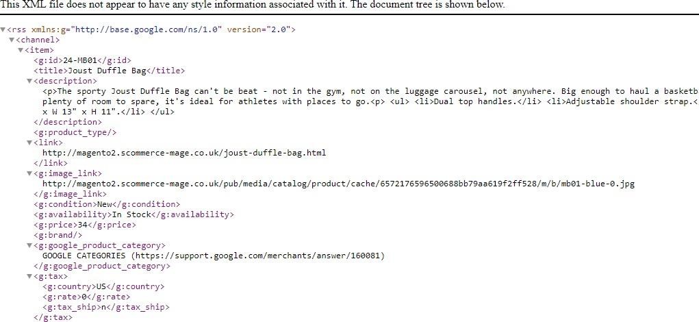 - Google Product Feed XML