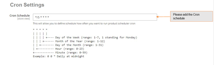 • Cron Schedule – This will allow you to define cron frequency, how often you want to run product scheduler cron.