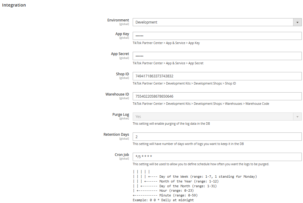 Go to Admin > Stores > Configuration > Scommerce Configuration > Tiktok Integration