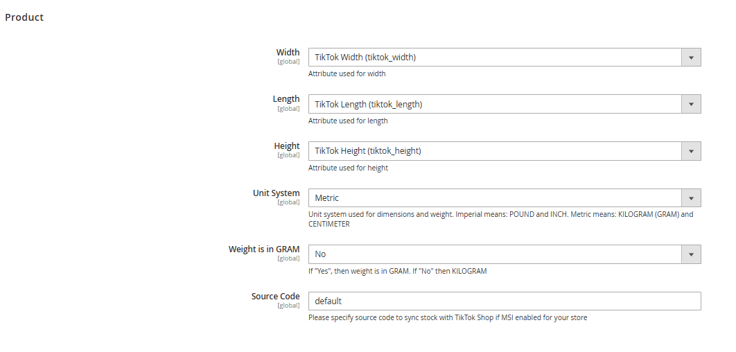 - Source Code - Please enter the source code to synchronize stock with TikTok Shop, if Multi-Source Inventory (MSI) is enabled for your store.
