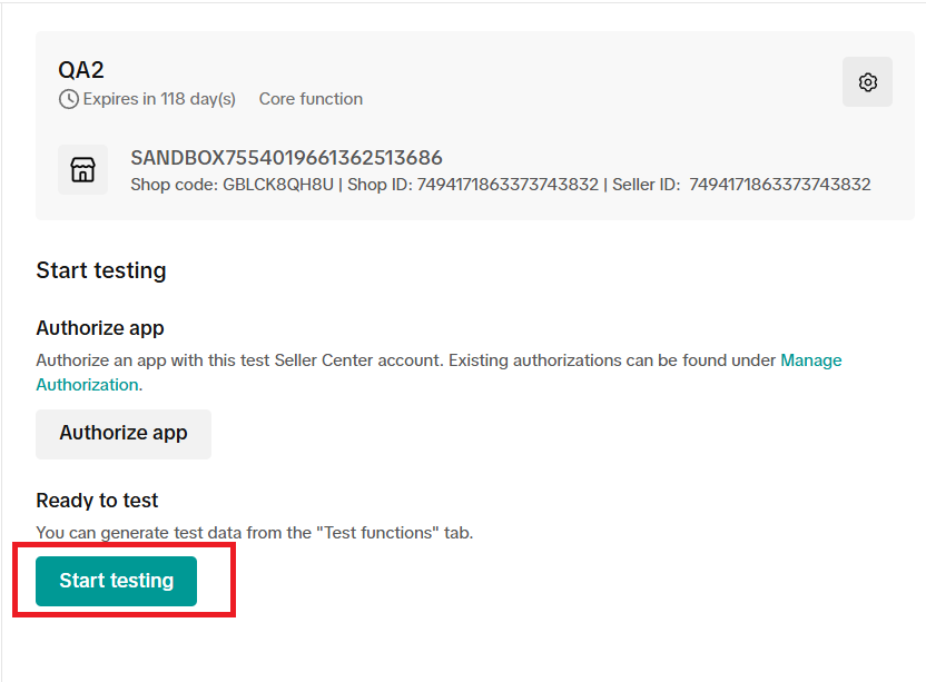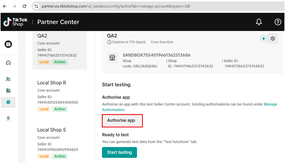 Once the product setup is complete, go to TikTok > Manage Accounts, click Start Testing, and then select Manage Products as shown in the image below.