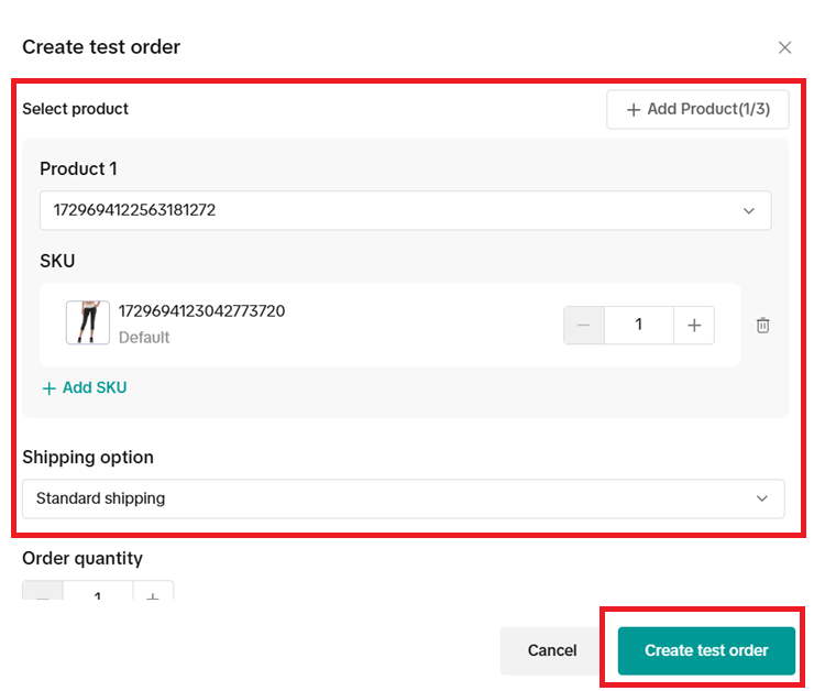 Select the product and shipping option, then click Submit. A new order will be created on TikTok.