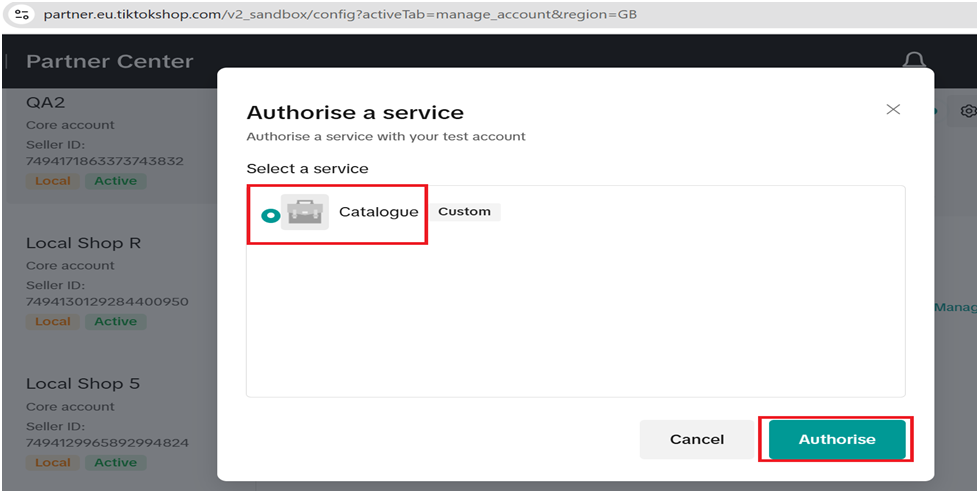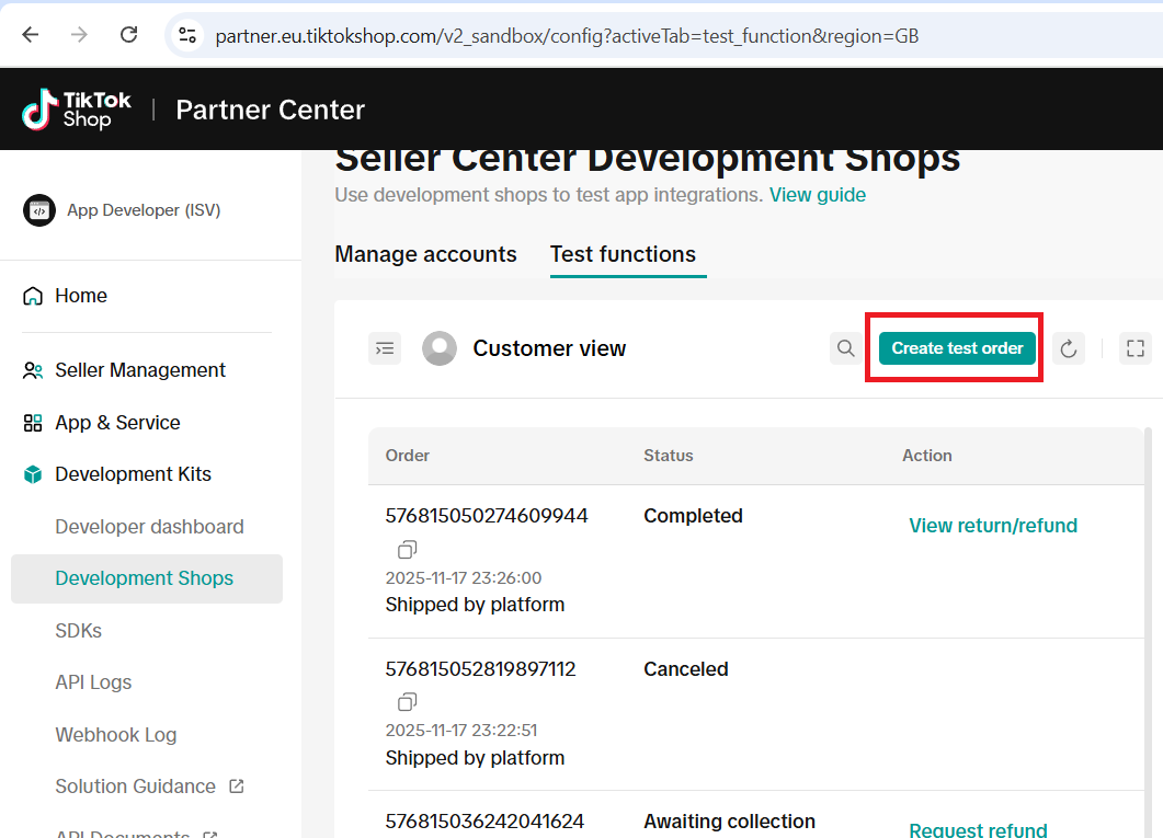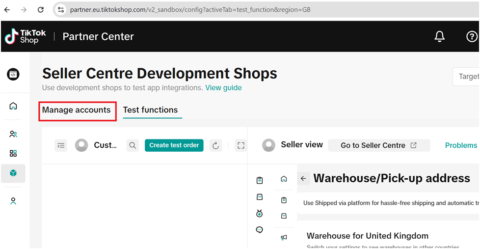 To place an order from TikTok, go to App and Services > Development Kits > Development Shops > Manage Accounts